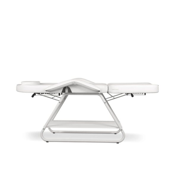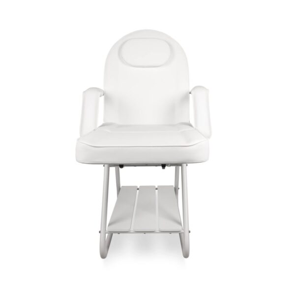 Pensé pour la polyvalence, ce fauteuil intègre coussin d’appui-tête et accoudoirs amovibles, permettant d’adapter la table à chaque soin du visage ou du corps. Une étagère inférieure en bois permet de garder outils et accessoires à portée de main, améliorant l’efficacité et le confort du professionnel.
