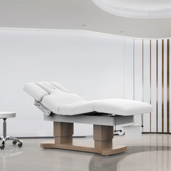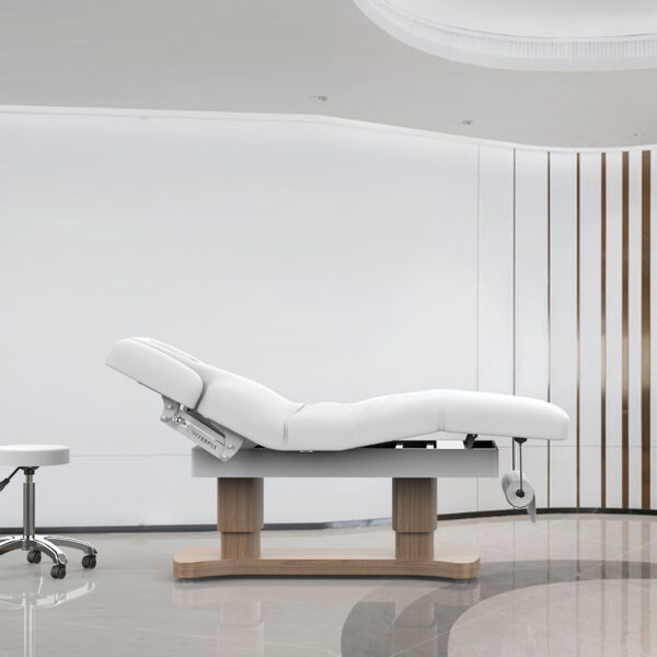 Repose-Pieds électrique ajustable (25°) : Le repose-pieds inclinable jusqu’à 25° ajoute une personnalisation supplémentaire, permettant de répondre aux besoins individuels des clients et d’adapter la position pour chaque type de soin.