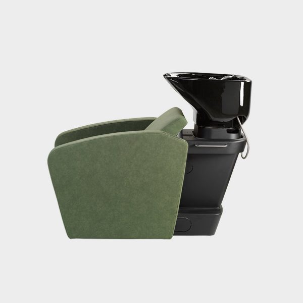 Le bac de lavage MARCELLO PRO possède une structure en acier traité par cataphorèse anti-corrosion. L’assise et les accoudoirs sont en contreplaqué avec rembourrage en mousse de polyuréthane recouvert de skaï. Le carter arrière est en ABS noir gaufré.
