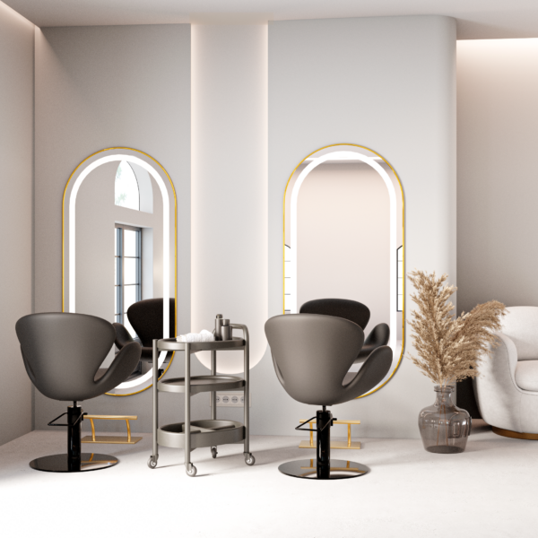Le miroir de coiffure POOL est l’alliance parfaite entre design raffiné, éclairage optimal et matériaux de qualité. Avec son éclairage LED périmétrique 3000K, il offre une lumière douce et chaleureuse, idéale pour mettre en valeur chaque coupe et coloration. Son cadre disponible en gold, silver ou black permet de l’intégrer harmonieusement dans tous les styles de salons de coiffure.