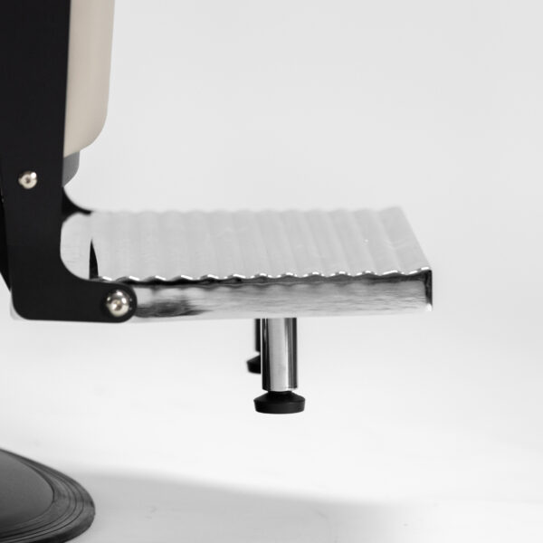 Le repose-pieds en aluminium inclinable garantit un confort supplémentaire pour vos clients, qu’ils soient assis ou inclinés. Sa conception robuste ajoute à la durabilité du fauteuil.