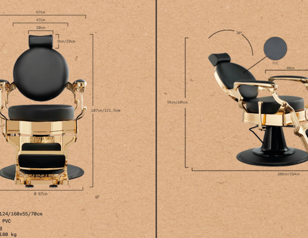 Mettez en valeur votre salon avec le fauteuil de barbier SHARK GOLD, une pièce qui allie design vintage et fonctionnalité moderne. Avec son châssis doré éclatant et ses lignes élégantes, ce fauteuil offre une expérience unique, tant pour le professionnel que pour le client. Robuste, ergonomique et visuellement captivant, il est conçu pour répondre aux attentes des barbiers les plus exigeants !