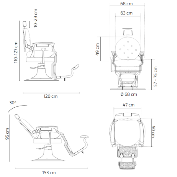 Les dimensions du fauteuil barbier KALIOPE BC sont dans les images du produit.